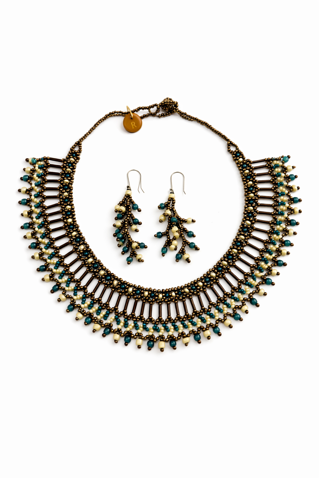 Material: Handcrafted Woven Beaded Necklace & Earrings with Silver